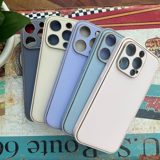 Luxurious Leather Case With Gold Border For Iphone 14 series