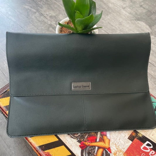 Dark Green PU Leather Laptop Sleeve With Charger Cover and Tie Down Straps