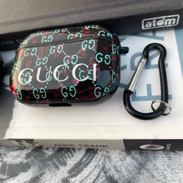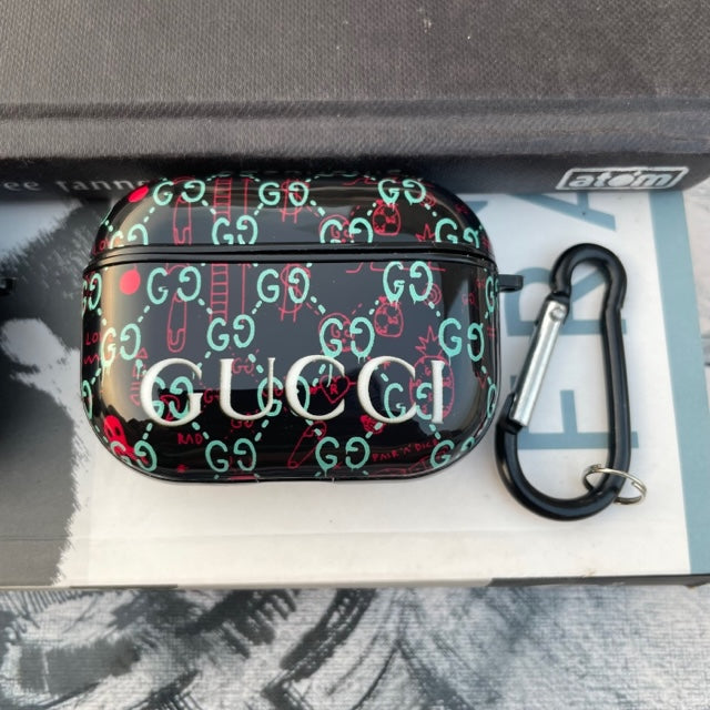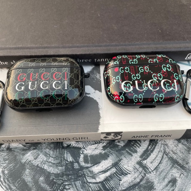 Black G Monogram Design Glossy Silicon Airpods Cases Cover for Pro