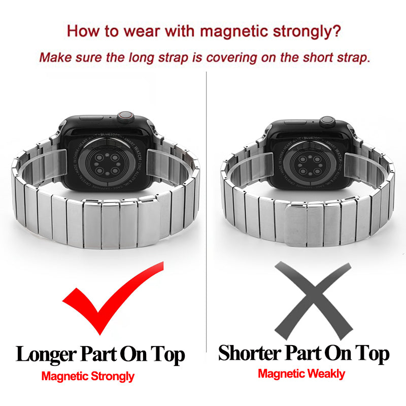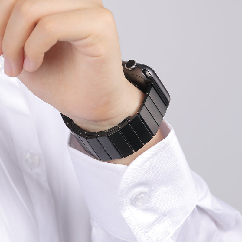 With its unique magnetic link design, the band is easy to adjust and customize to your wrist size, providing a secure and comfortable fit all day long. The band also features a smooth and polished texture, making it a perfect match for your Apple Watch.