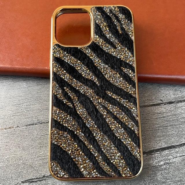 Glittery Crystal With Fur Cases For Iphone 11-12-13 Series