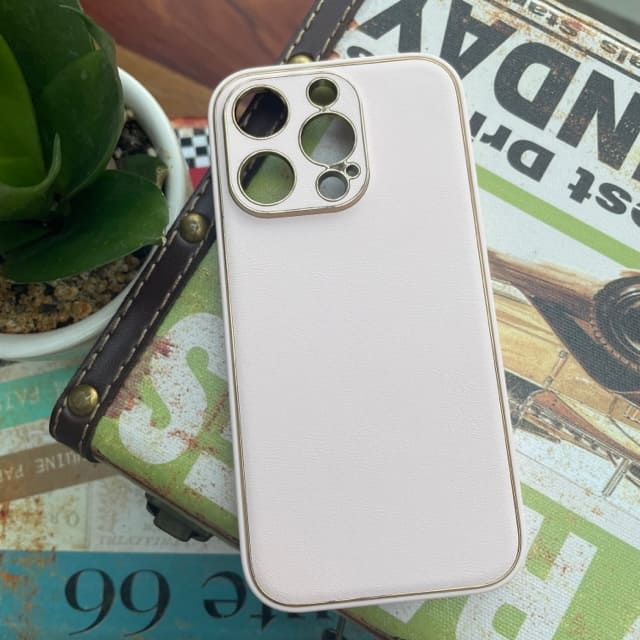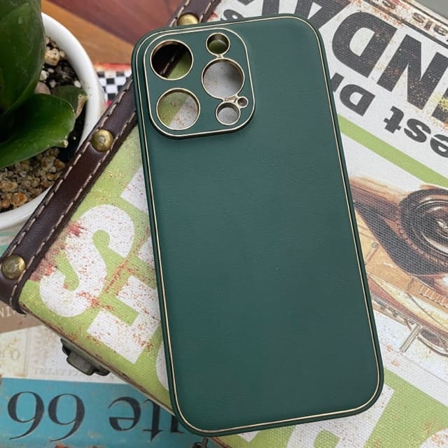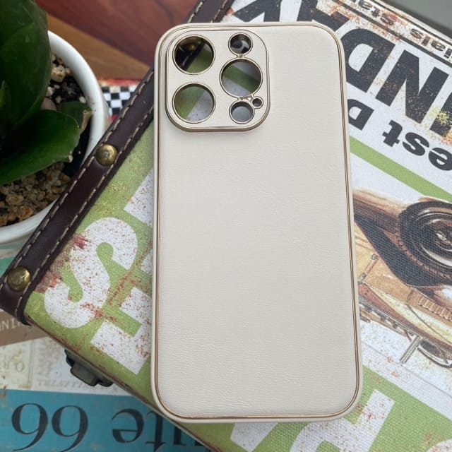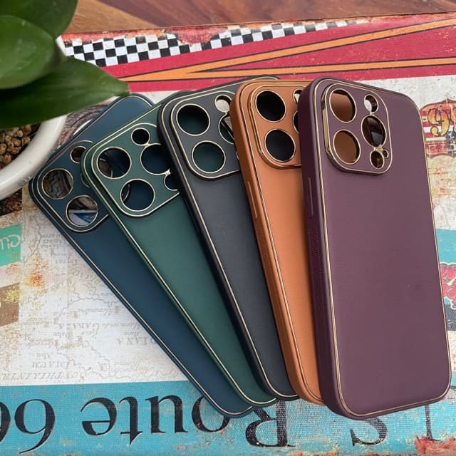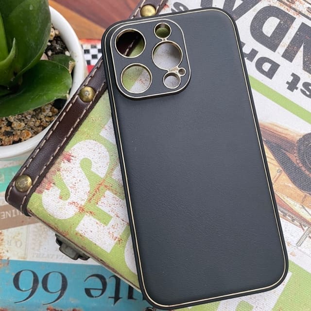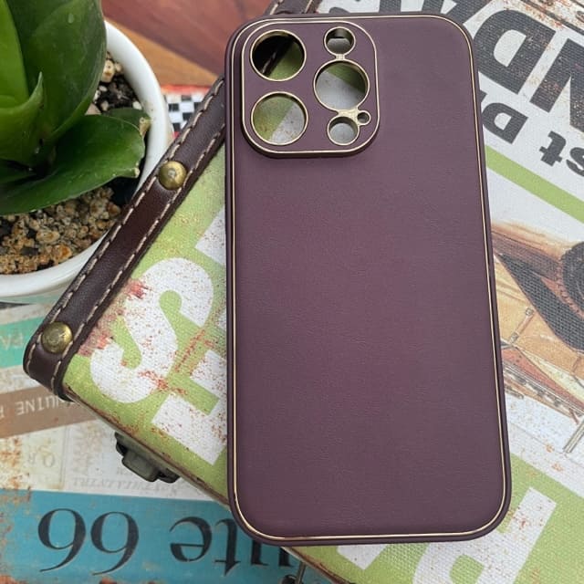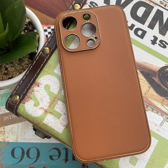 Luxurious Leather Case With Gold Border For Iphone 14 series