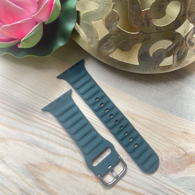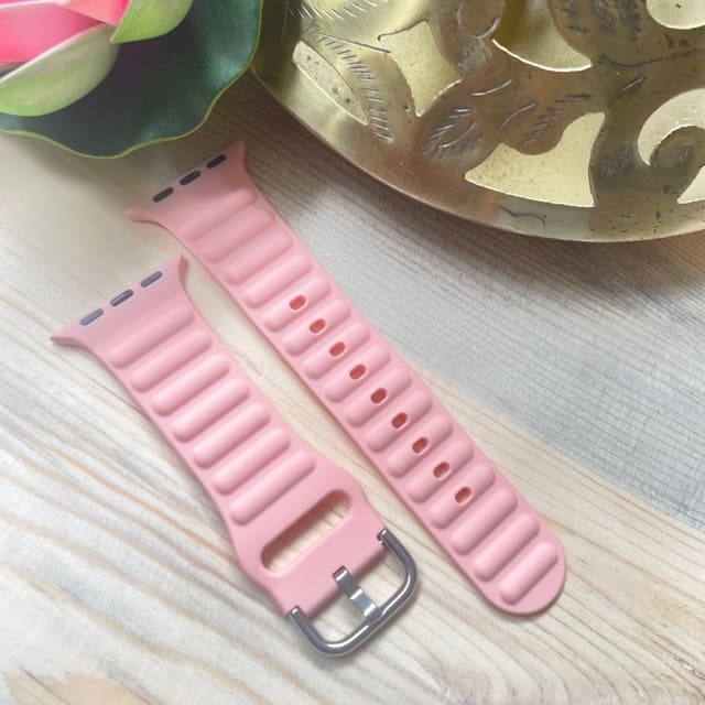Pastel shade Ridge Silicone With Metal Buckel Apple Watch Band For 38-40-41 mm