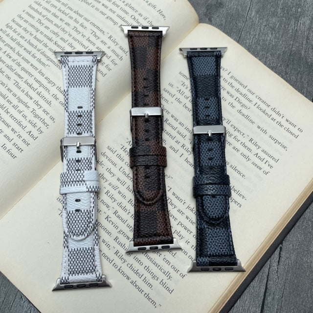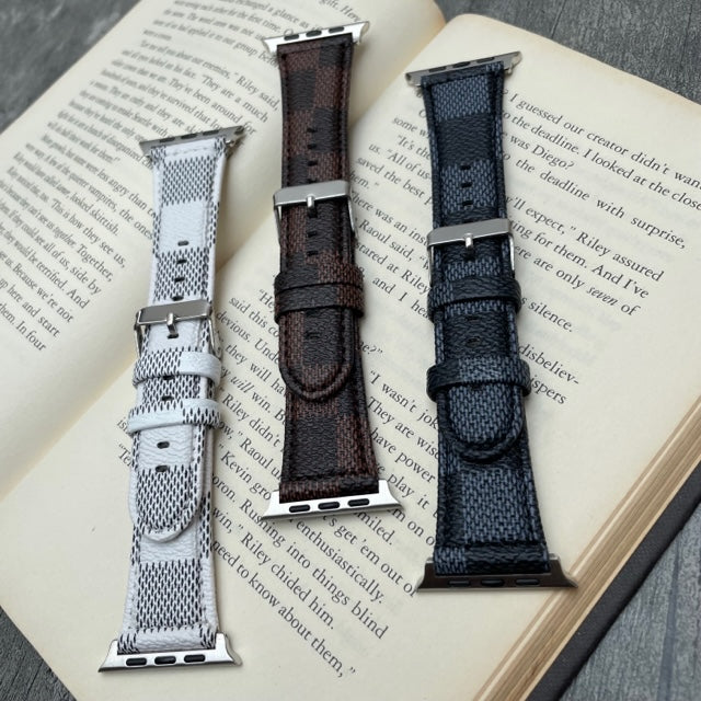Vegan Leather Narrow Square Checks Design Apple Watch Band for 38-40-41 mm