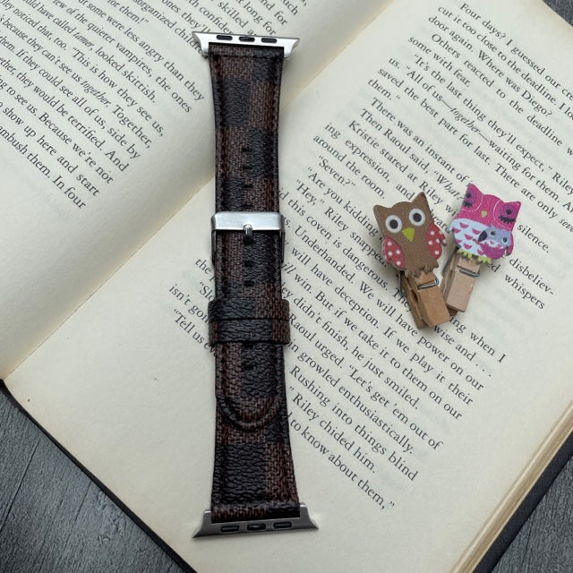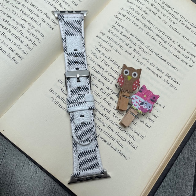 Vegan Leather Narrow Square Checks Design Apple Watch Band for 42-44-45-49 mm