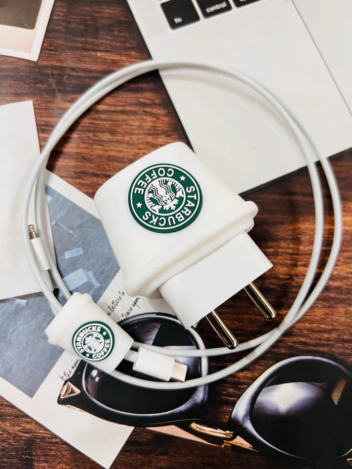 Featuring the classic Star-Bucks logo in crisp white, it's a tribute to your love for coffee culture. Beyond its trendy design, this cover safeguards your charger from wear and tear, ensuring it stays in perfect condition.
